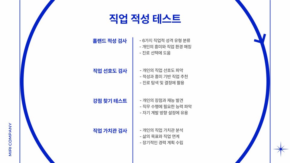 - 자신에게 적합한 테스트를 선택하여 보다 심도 있는 자기 이해를 할 수 있습니다.