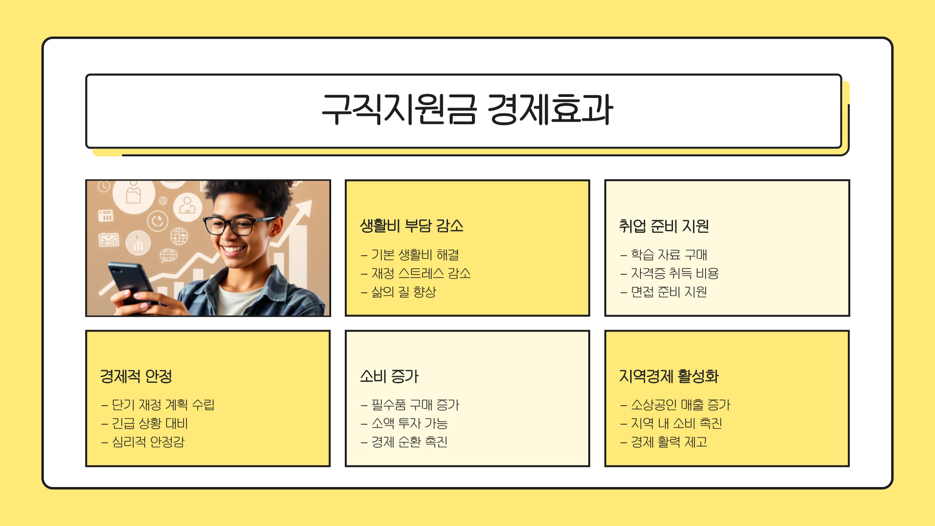 - 구직지원금은 실업자에게 경제적 지원을 제공하여 구직 활동을 촉진합니다.