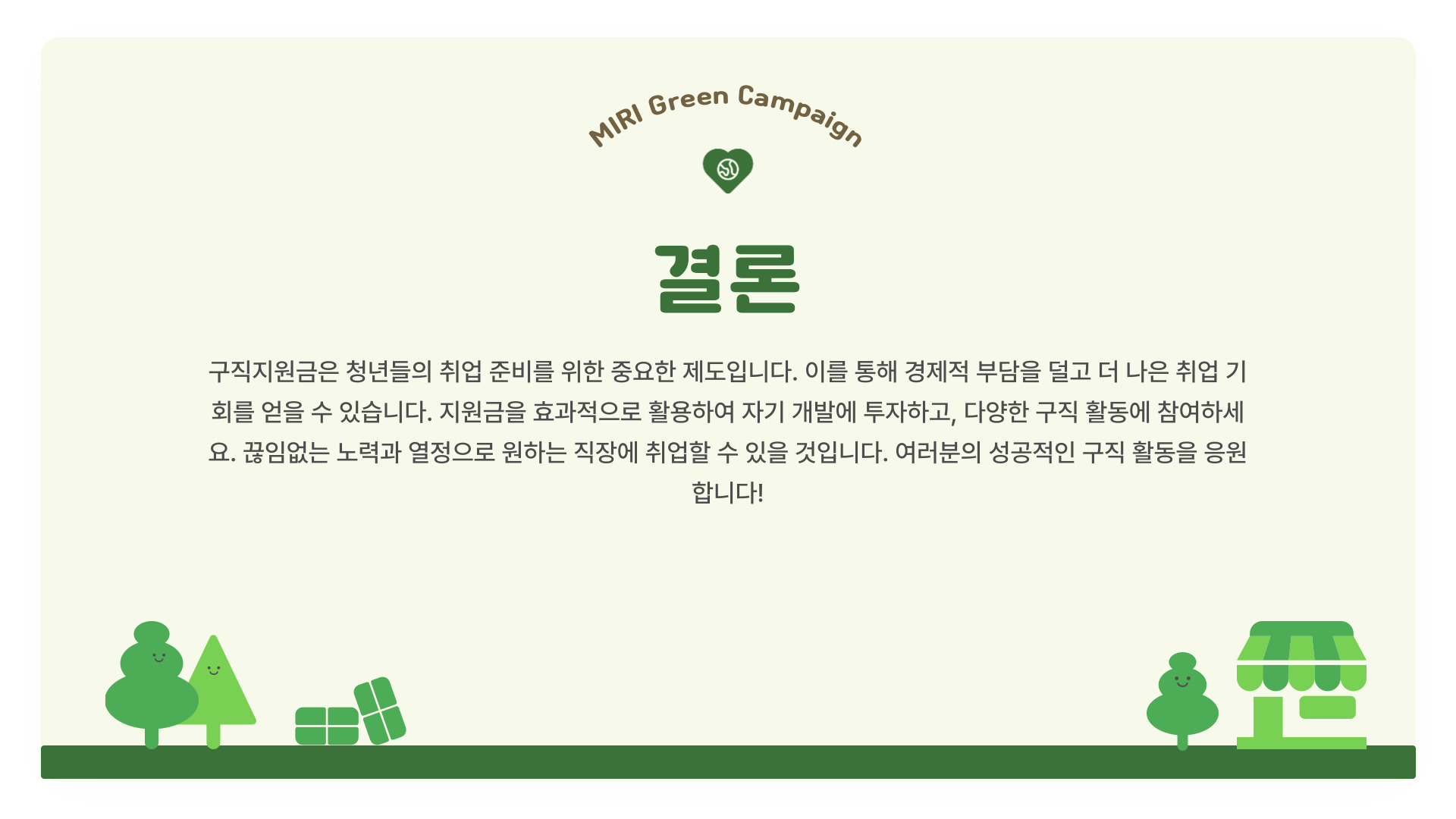 - 취업에 필요한 비용을 줄여주어 경제적 부담 완화