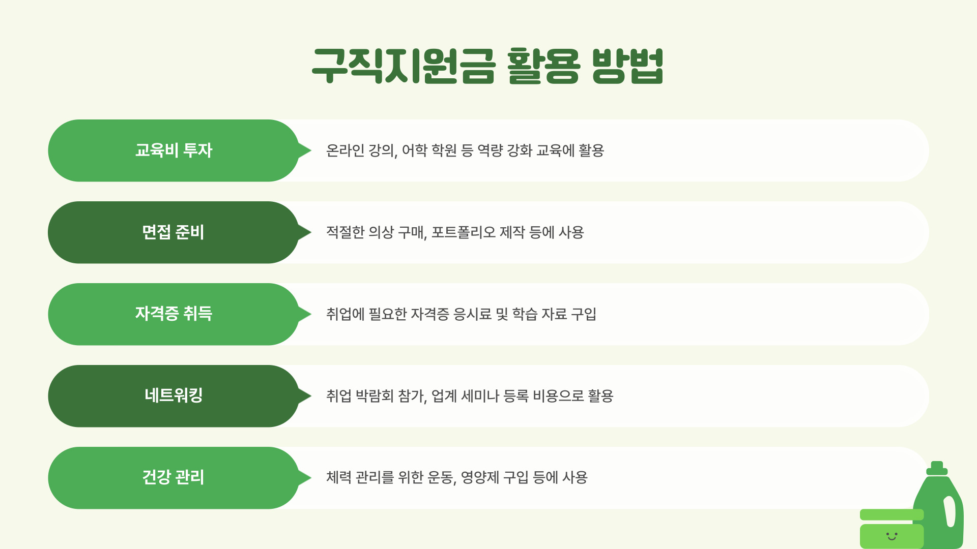 - 구직지원금의 목적: 구직자의 안정적 구직활동 지원