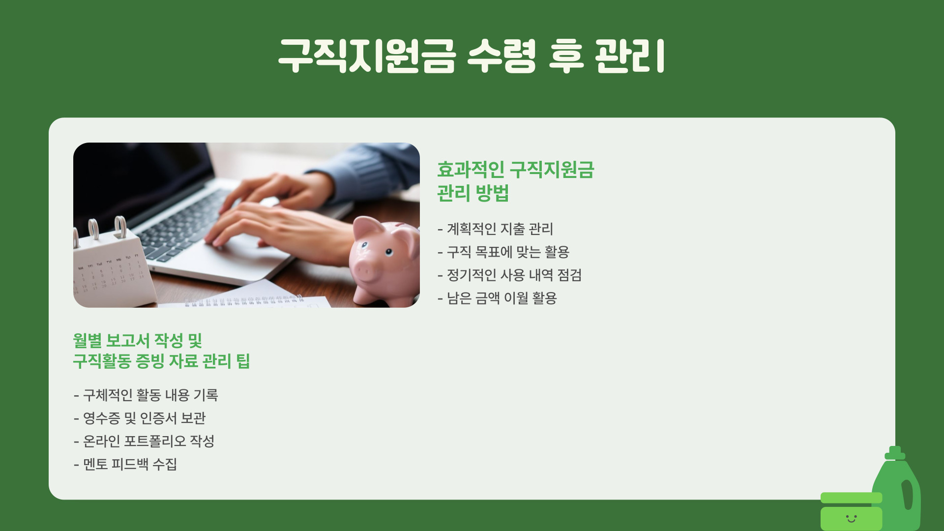 여러분도 주저하지 말고 신청해보세요. 구직지원금은 여러분의 취업 여정을 돕는 중요한 도구가 될 수 있습니다.