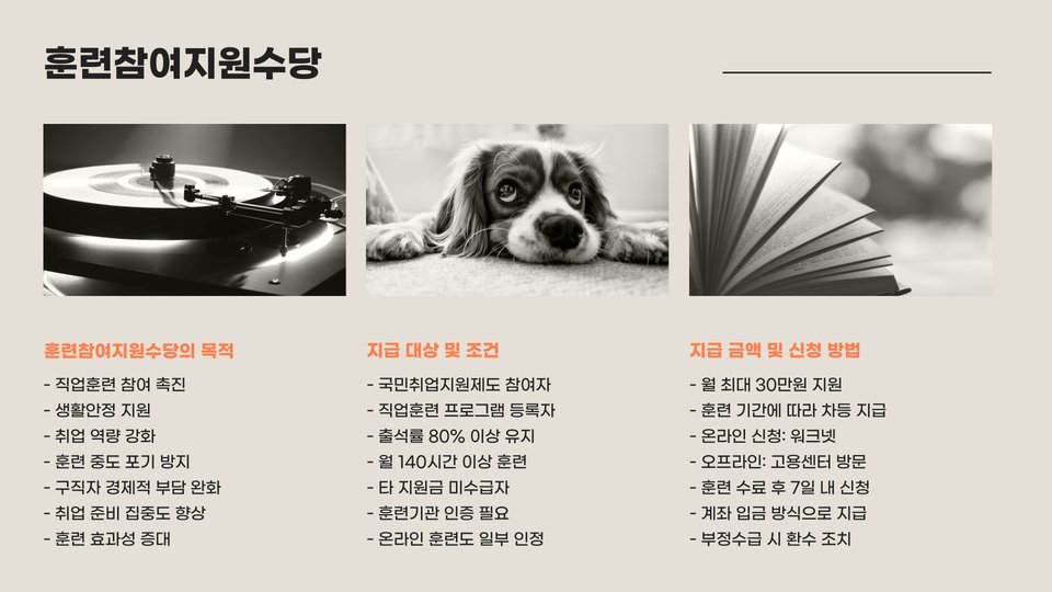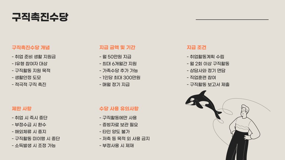 - 국민취업지원제도는 구직 지원과 직업 훈련을 제공합니다.