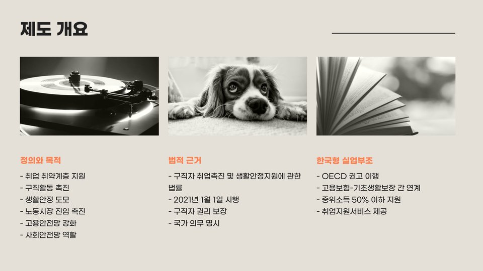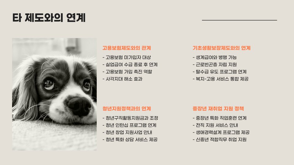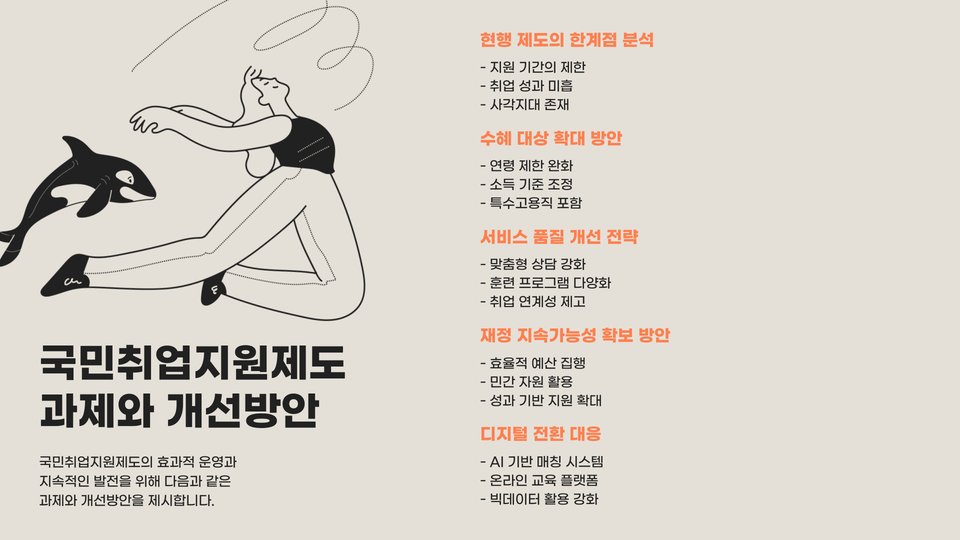 - 국민취업지원제도는 실업자와 구직자를 위한 정책입니다.