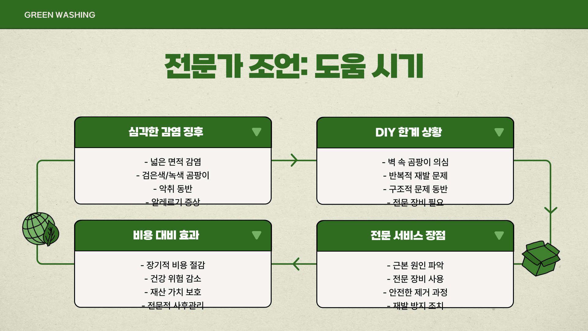 - 곰팡이가 짙은 벽지는 즉시 전문가에게 의뢰하는 것이 좋습니다.