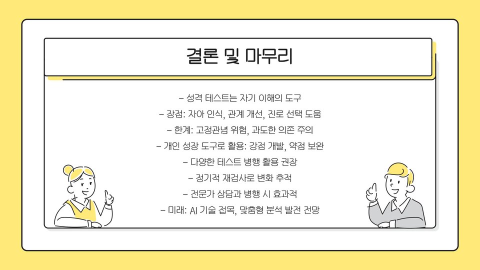 - 결과를 통해 개인의 성장 및 대인 관계 개선 가능