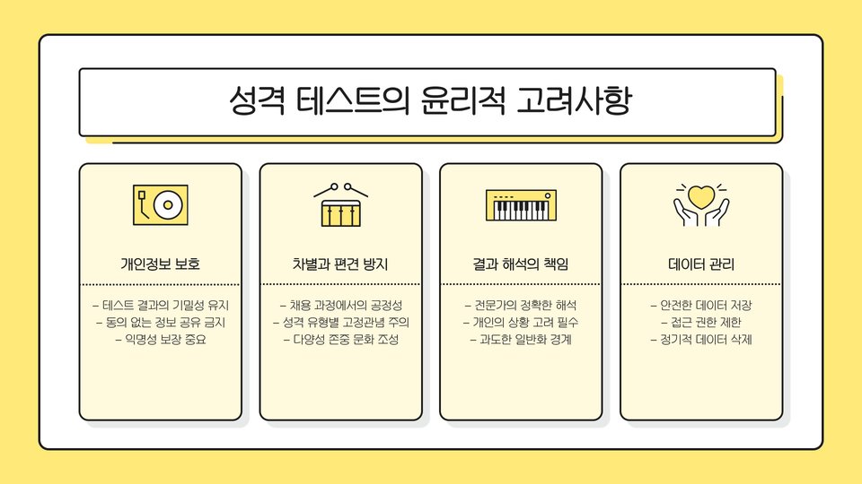 성격 심리테스트는 우리를 더 잘 이해하고, 타인과의 소통을 증진시키는 데 매우 중요한 도구입니다.