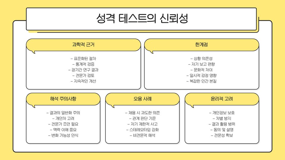성격 심리테스트는 우리를 더 잘 이해하고, 타인과의 소통을 증진시키는 데 매우 중요한 도구입니다.