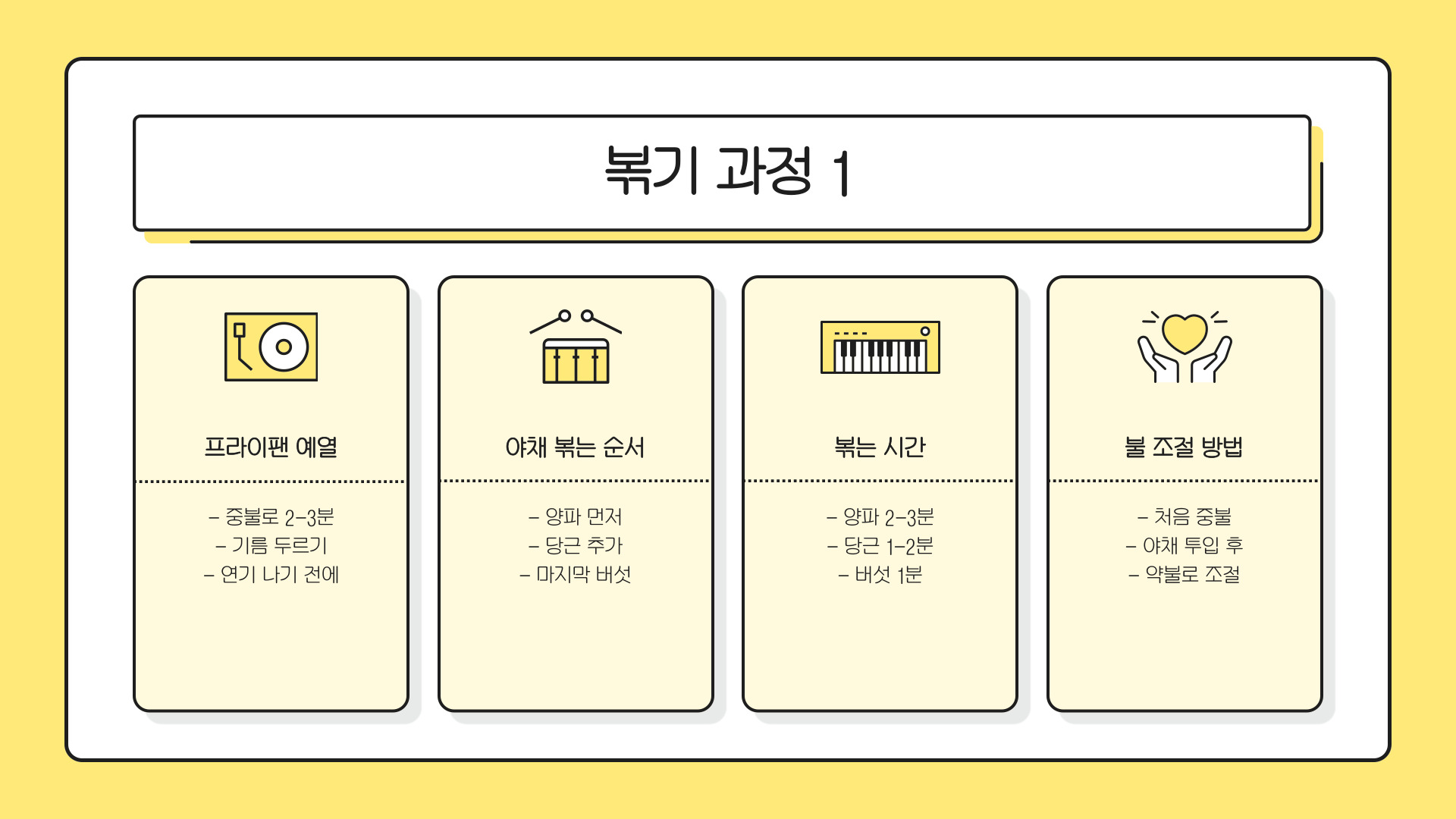 자, 이제 본격적으로 조리를 시작해 볼까요? 첫 단계는 재료 손질입니다. 양파, 당근, 파프리카는 적당한 크기로 썰어 주고, 대파는 송송 썰어 줄 필요가 있습니다. 이 때, 색깔이 다양한 채소를 사용하면 시각적으로도 풍성한 느낌을 줄 수 있습니다. 재료 손질이 끝난 후, 팬에 기름을 두르고 재료를 볶아줍니다.