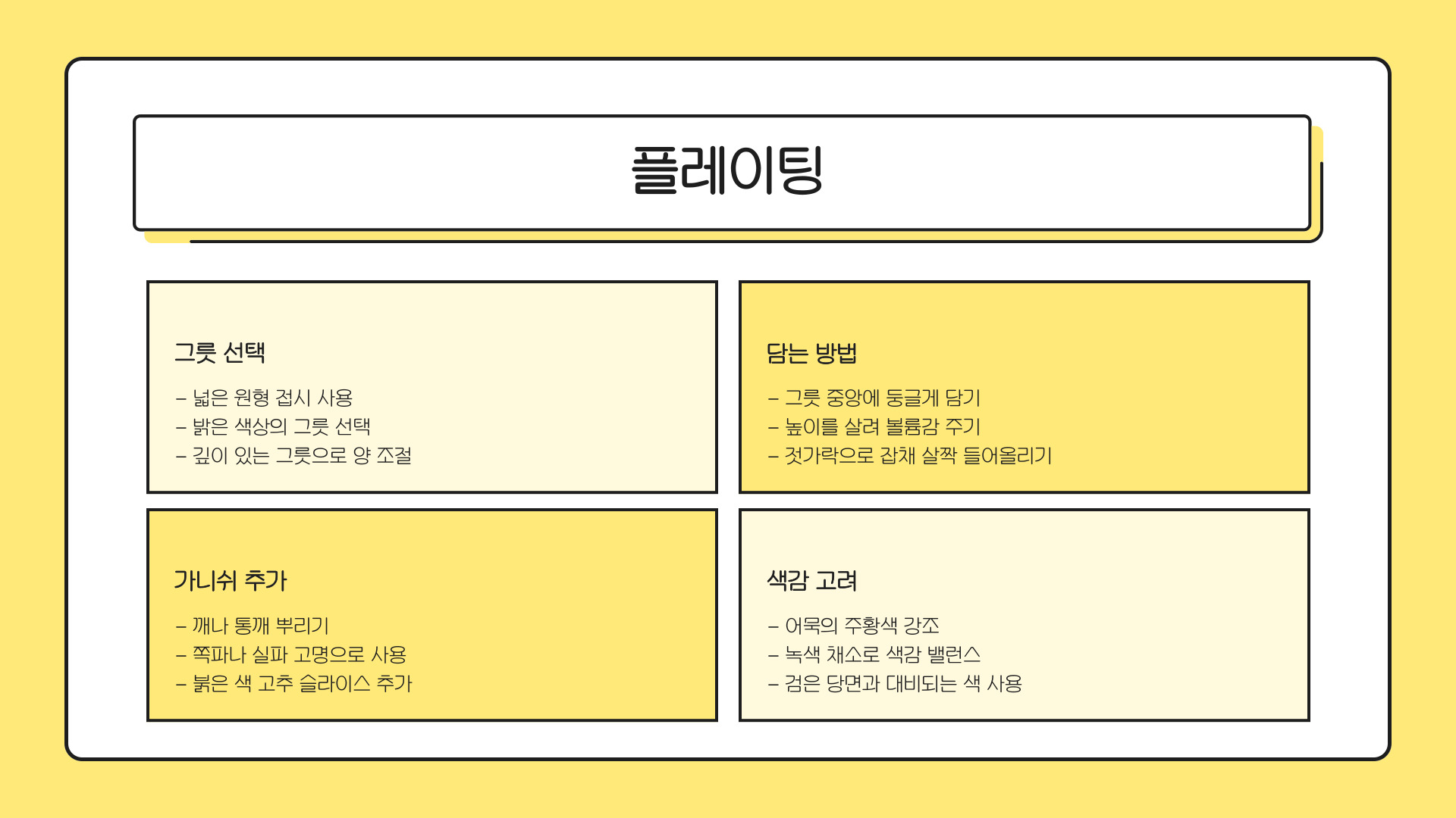 • 재료는 다양하게 선택하되, 신선함을 우선시하라