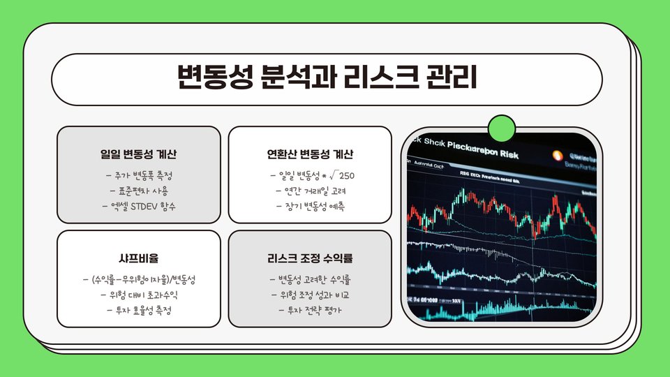 엑셀을 이용하여 수익률을 분석하는 방법 중 전문가들은 통계함수를 활용한 접근을 추천합니다. 예를 들어, AVERAGE 함수와 STDEV 함수를 결합하여 평균 수익률과 변동성을 확인할 수 있습니다. 이로 인해 투자자는 너무 높은 리스크를 감수해야 하는지를 판단할 수 있는 기회를 얻게 됩니다.