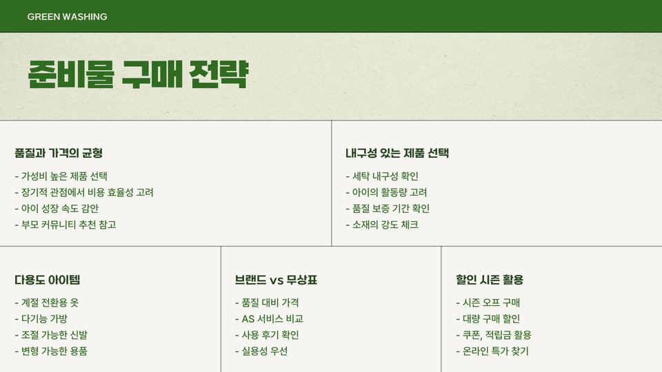 세 번째로, 세일 기간이나 이벤트를 활용하면 예산을 절약할 수 있습니다. 많은 매장에서 제철 세일을 진행하므로 이 시기를 놓치지 마세요. 마지막으로, 주변 친구들이나 선배 부모님들로부터 추천을 받아보는 것도 좋은 방법입니다.