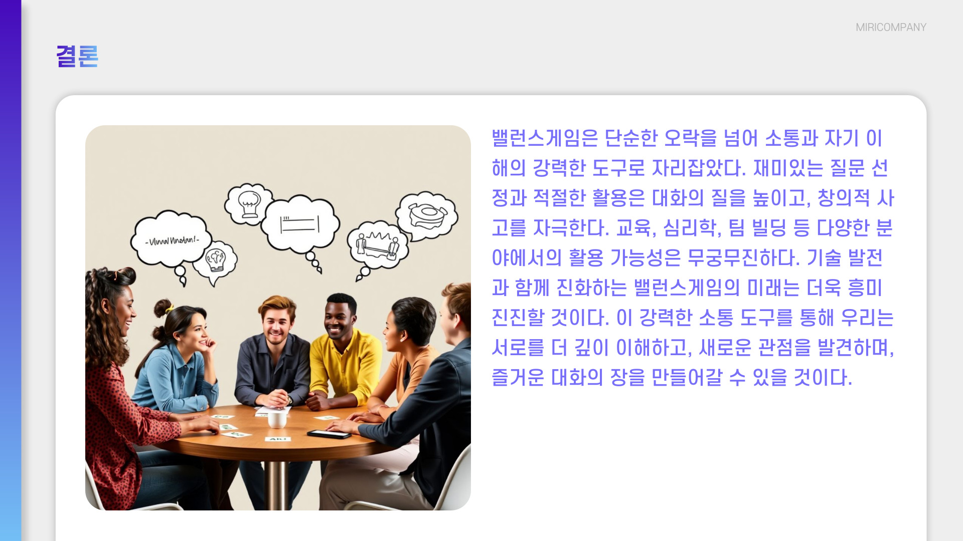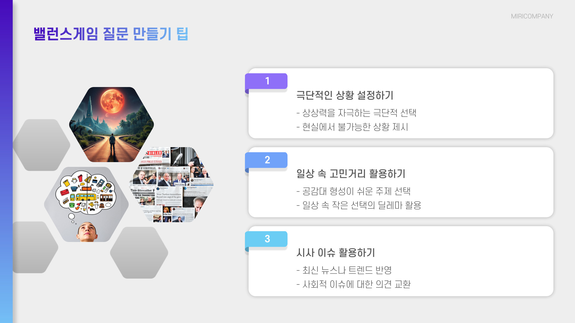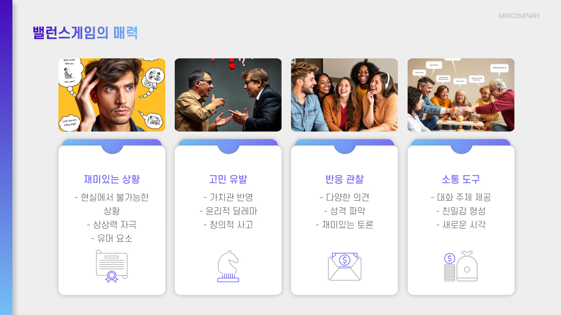 - 밸런스게임은 친구들과의 유대감을 높이는 좋은 방법이다.