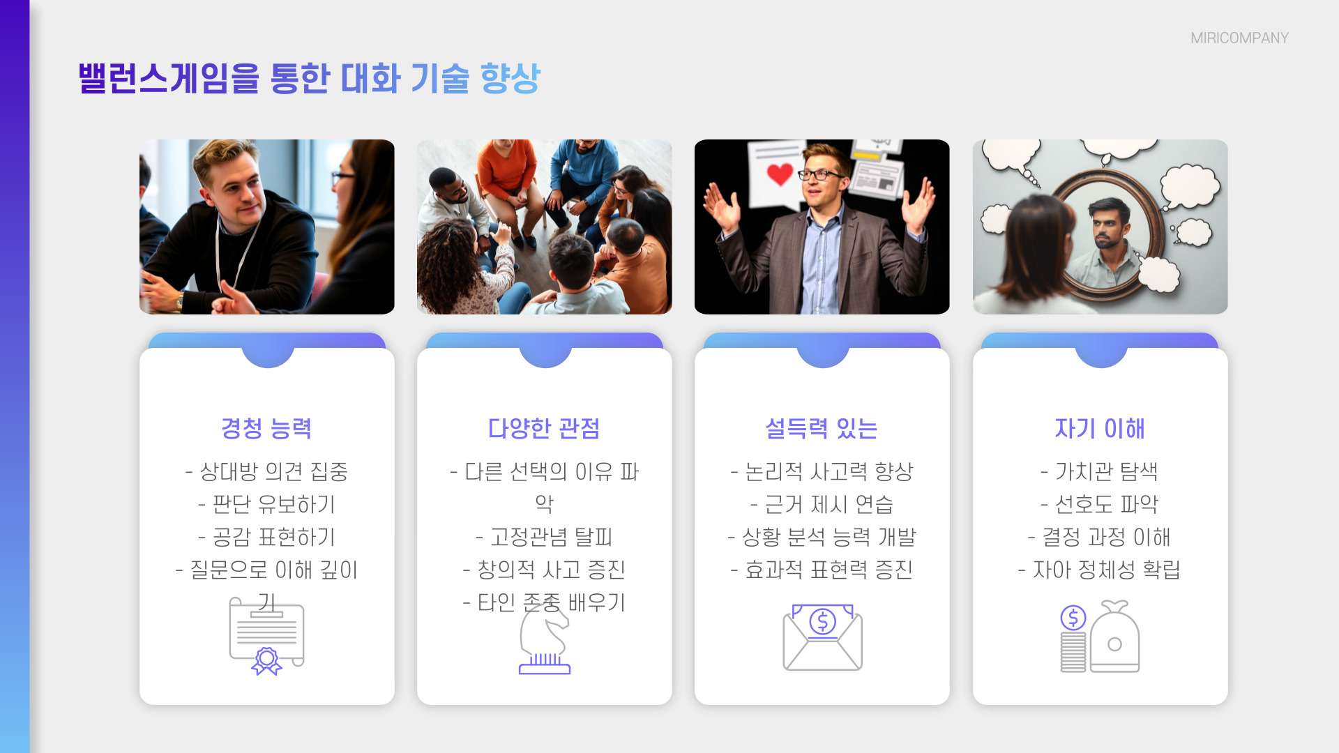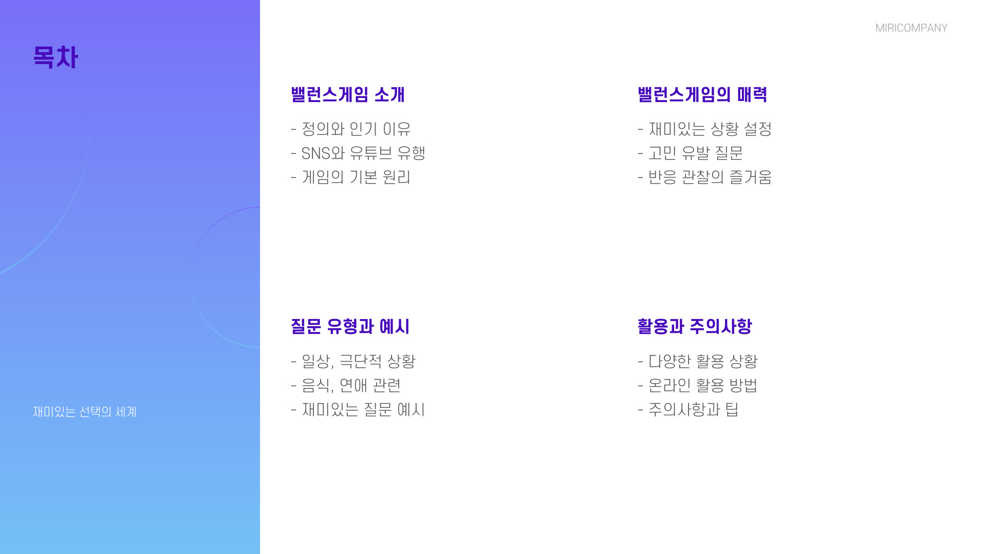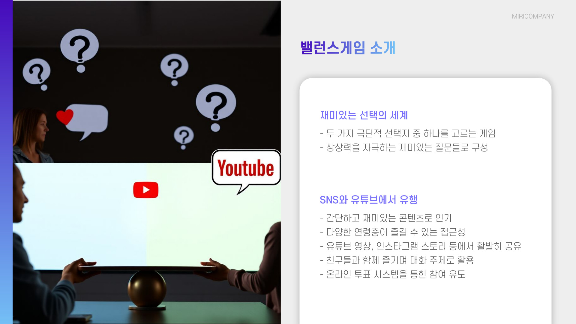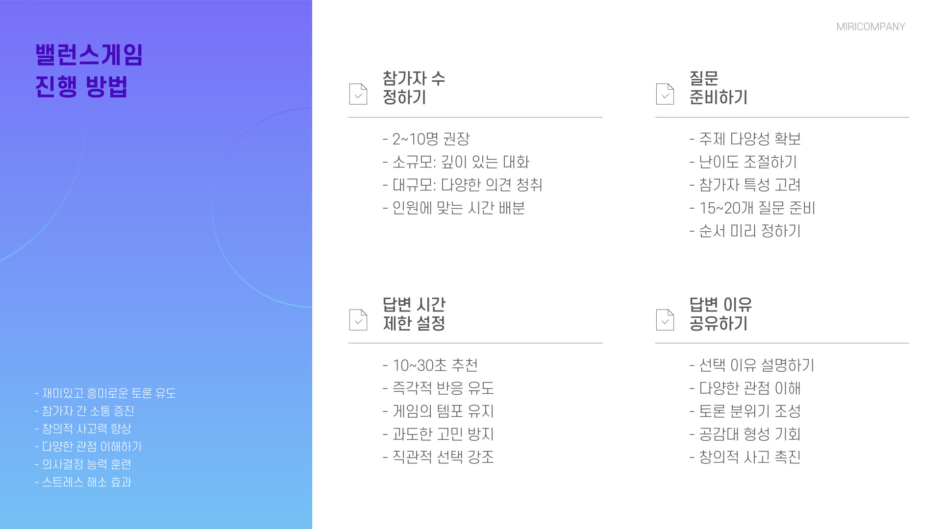 - 밸런스게임은 친구들과의 유대감을 높이는 좋은 방법이다.