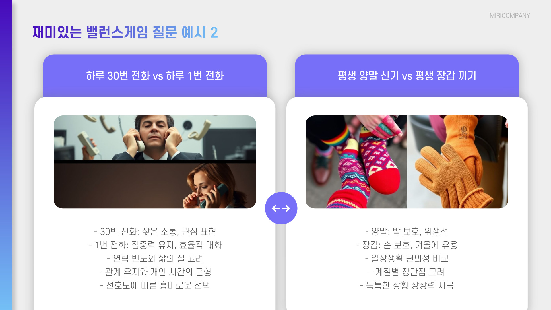 - 밸런스게임은 친구들과의 유대감을 높이는 좋은 방법이다.