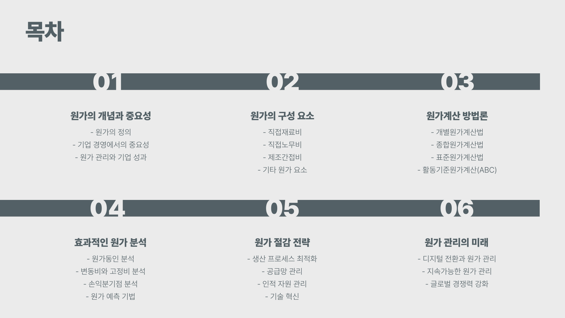마지막으로, 원가는 단지 비용의 개념을 넘어서, 여러분의 미래를 결정짓는 중요한 요소임을 잊지 마세요. 진정한 비법은 꾸준한 관리와 지속적인 개선입니다.
