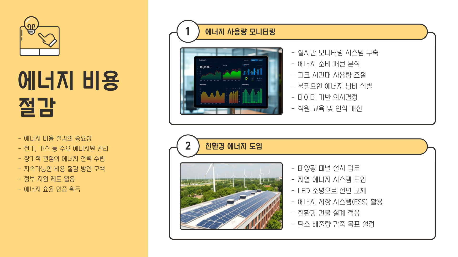 | 에너지 절약 | 효율적인 기기 사용 및 불필요한 소비 줄이기 |