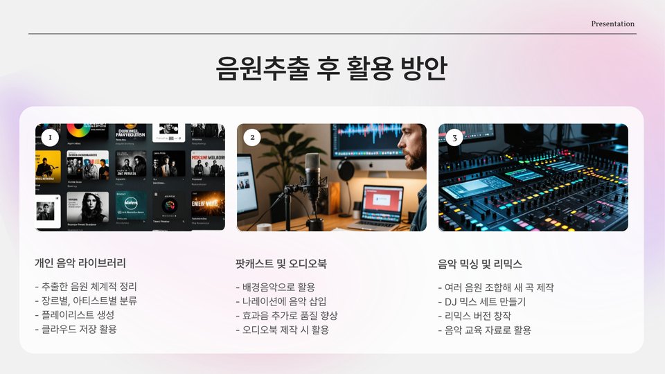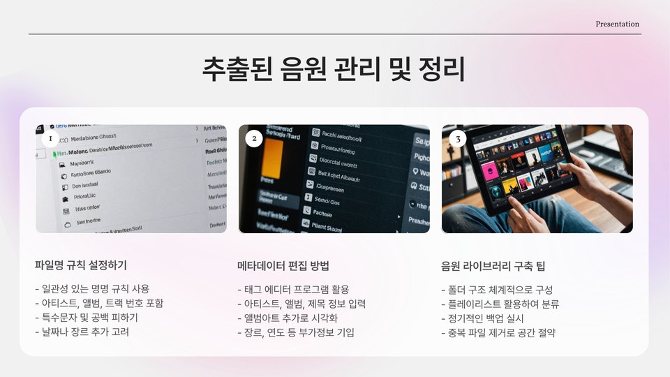 - 모바일 앱 활용: 스마트폰에서 쉽게 음원을 추출할 수 있는 애플리케이션.
