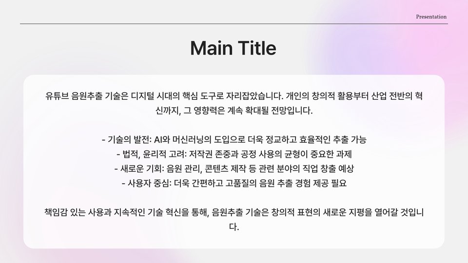 이상으로 유튜브 음원추출에 대한 A to Z 가이드를 마치겠습니다. 이번 가이드를 통해 유튜브 음원추출의 기본 개념과 방법을 이해하고, 안전하고 효과적으로 음원을 사용할 수 있는 방법을 배우셨기를 바랍니다. 지속적으로 이와 같은 정보를 통해 콘텐츠 제작의 기회를 더 확장하시길 바랍니다.