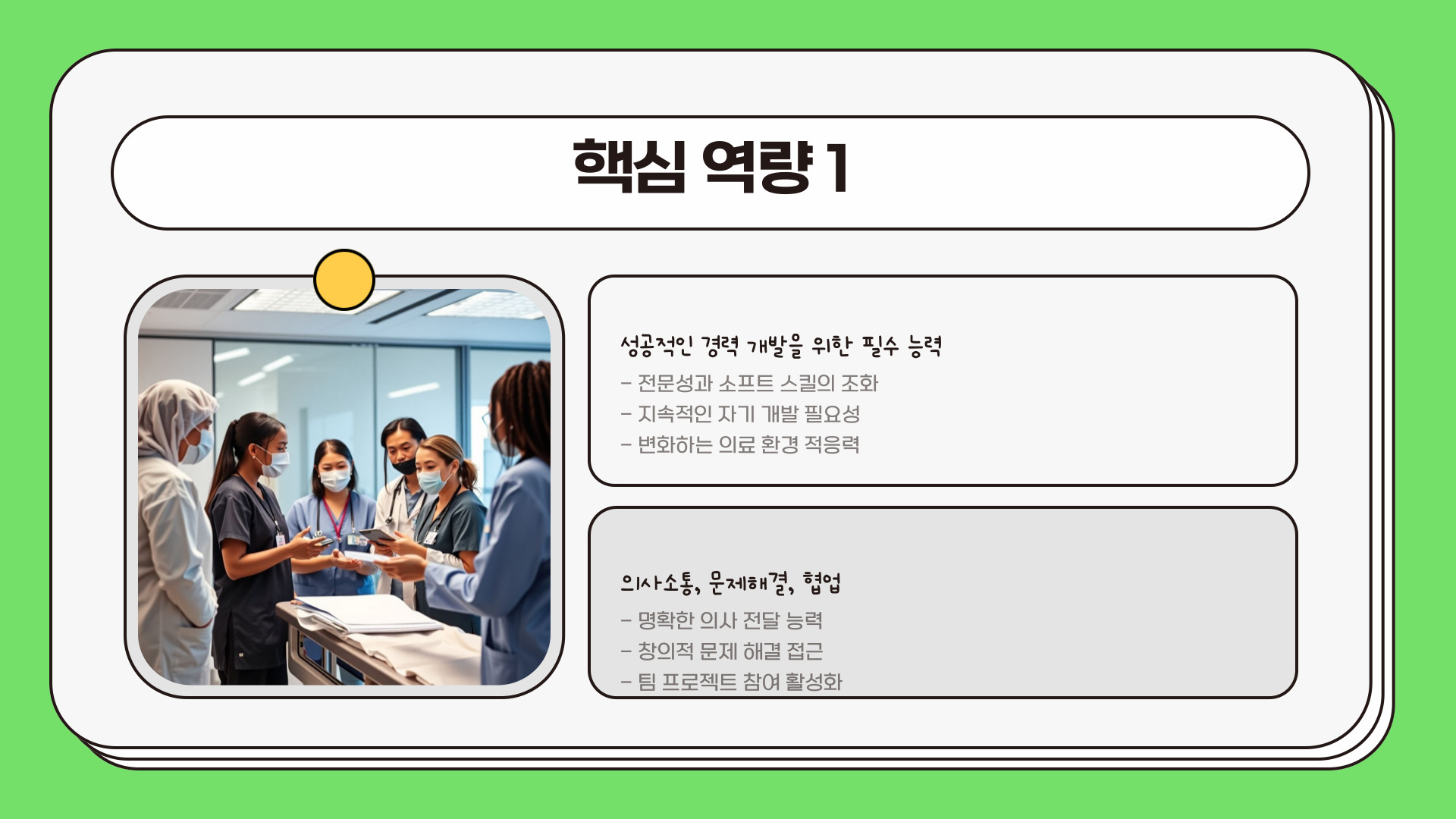 마지막으로, 글로벌화를 염두에 두어야 합니다. 여러 국가의 건강 관리 시스템이 서로 연결되면서 글로벌 의료 분야에서의 경력 기회도 존재하게 됩니다. 각국의 의료 시스템을 이해하고 국제적인 경력을 쌓기 위해 영어 능력도 향상시키는 것이 중요합니다. 이러한 다각적인 능력 개발은 향후 여러분을 예상치 못한 길로 이끌 수도 있도록 합니다.