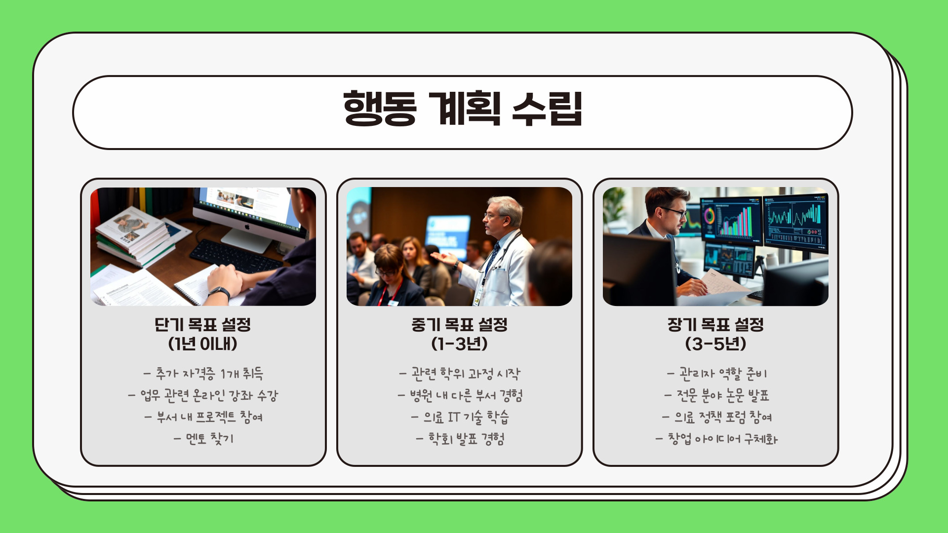 이 글이 여러분의 미래 목표 설정에 도움이 되었기를 바랍니다. 의료사무직에서의 성장과 발전을 위해 끊임없이 노력해 주시기 바랍니다.