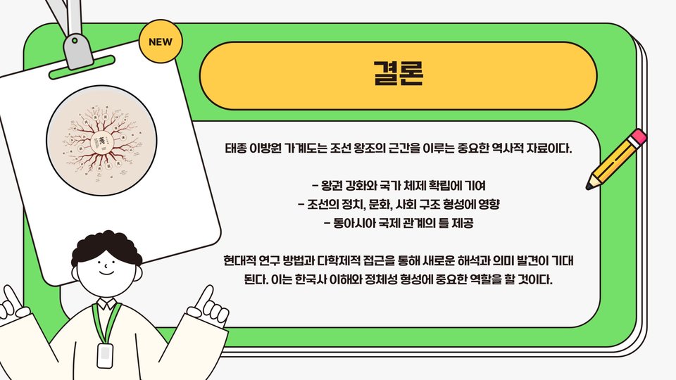 - 이방원의 가계도 연구는 현대에도 유의미하다.