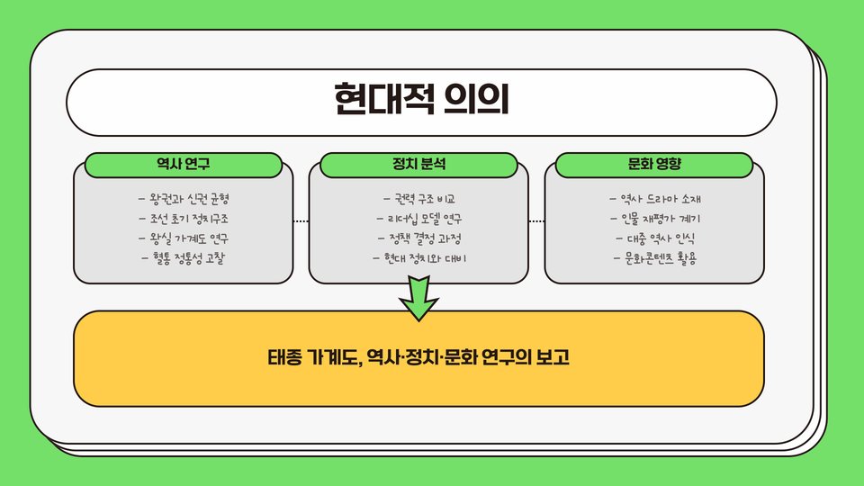 - 이방원의 가계도 연구는 현대에도 유의미하다.