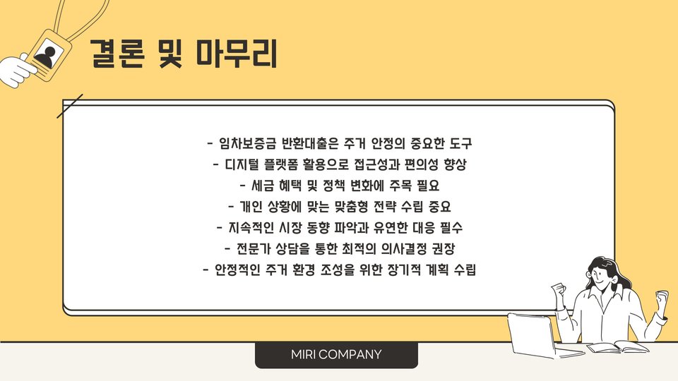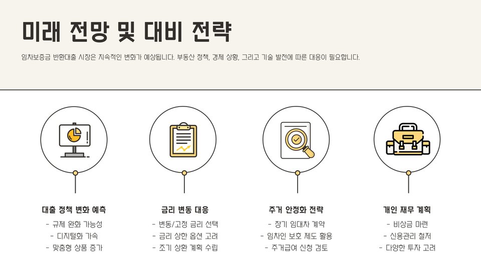 임차보증금 반환대출은 주거 안정성을 높이고, 임대인의 보증금 반환 지연에 대한 대응책이 될 수 있습니다. 이 대출을 통해 재정적 어려움을 극복할 수 있는 기회를 제공받을 수 있습니다. 그러나 대출 조건을 철저히 이해하고, 신중하게 결정하는 것이 필요합니다. 이 정보를 통해 보다 현명한 금융 결정을 내리길 바랍니다.