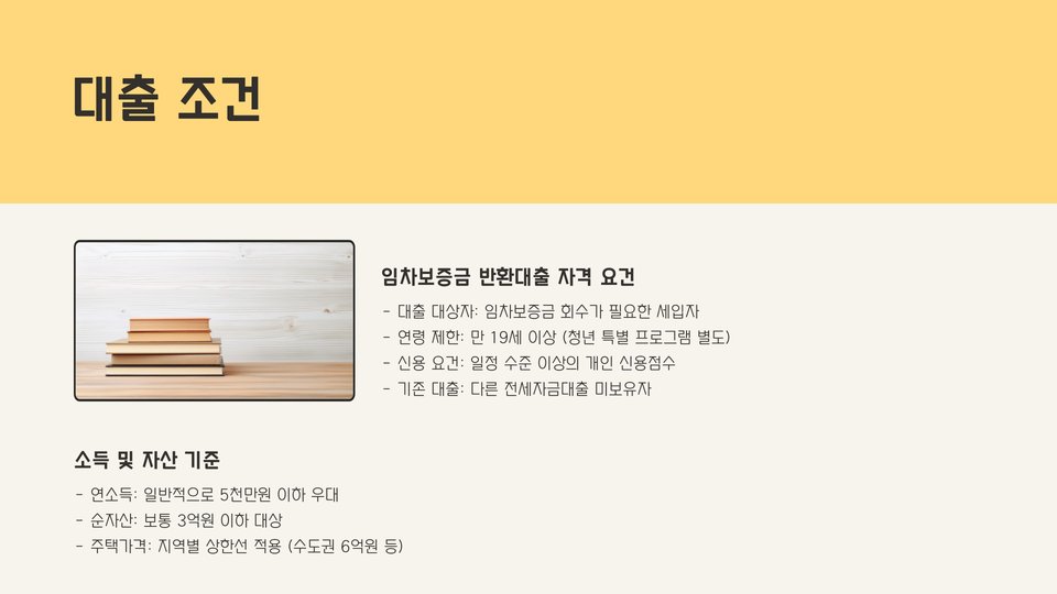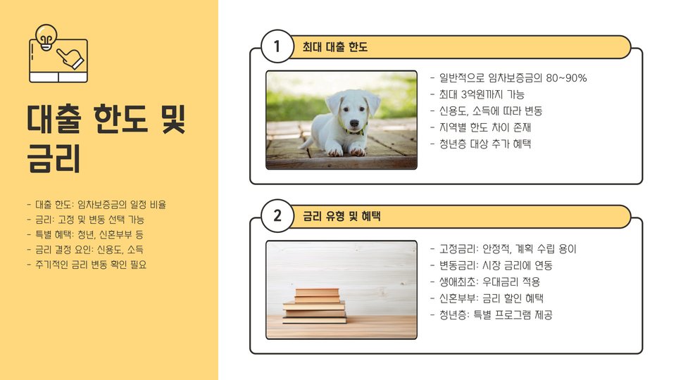 중요 팁: 대출 신청 전 반드시 신용 상태를 확인하고, 다양한 금융기관의 조건을 비교하세요.
