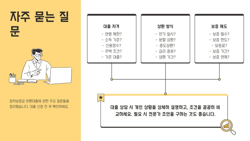• 임차보증금 반환대출은 보증금 반환 지연 시 필요한 자금을 지원합니다.