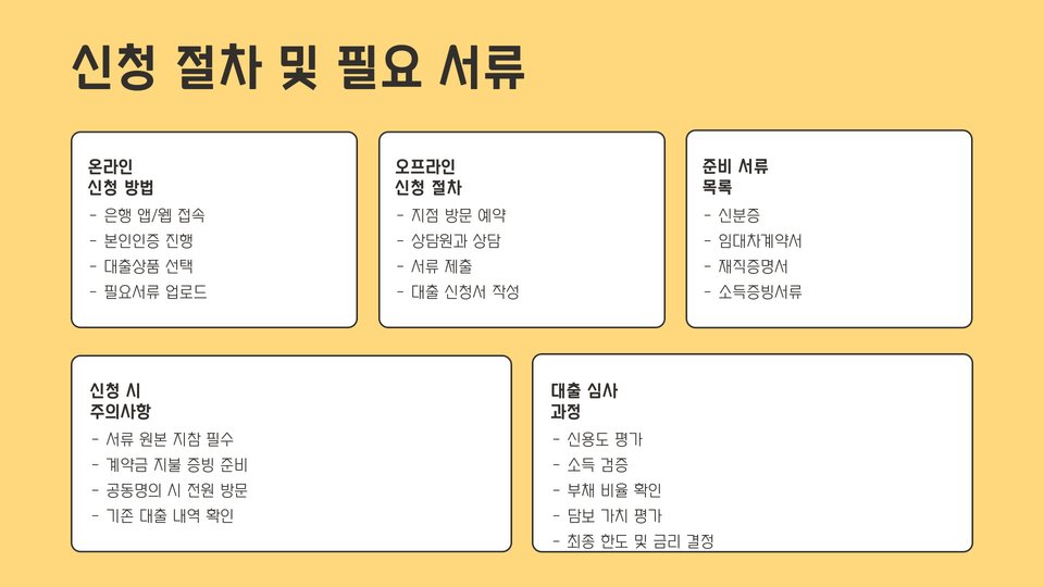 • 신청 절차에서 금융기관 선택과 서류 준비가 필수입니다.