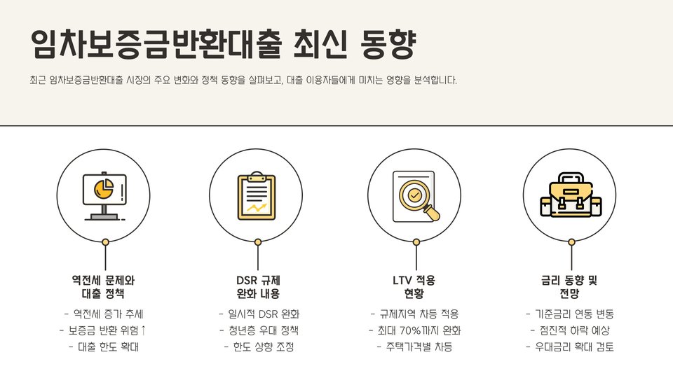 우선, 임차보증금 반환대출의 주요 특징을 이해하는 것이 중요합니다. 이 대출은 일반적으로 계약서에 명시된 임차보증금을 보장받는 동시에, 법적 절차가 진행되는 동안 임차인이 필요로 하는 이자율이 낮은 대출을 제공합니다. 이러한 대출은 통상적으로 대출 한도나 이자율이 임대차 계약서에 명시된 보증금의 비율에 따라 달라질 수 있습니다. 따라서, 각 대출 상품의 조건을 면밀히 살펴보는 것이 필요합니다.