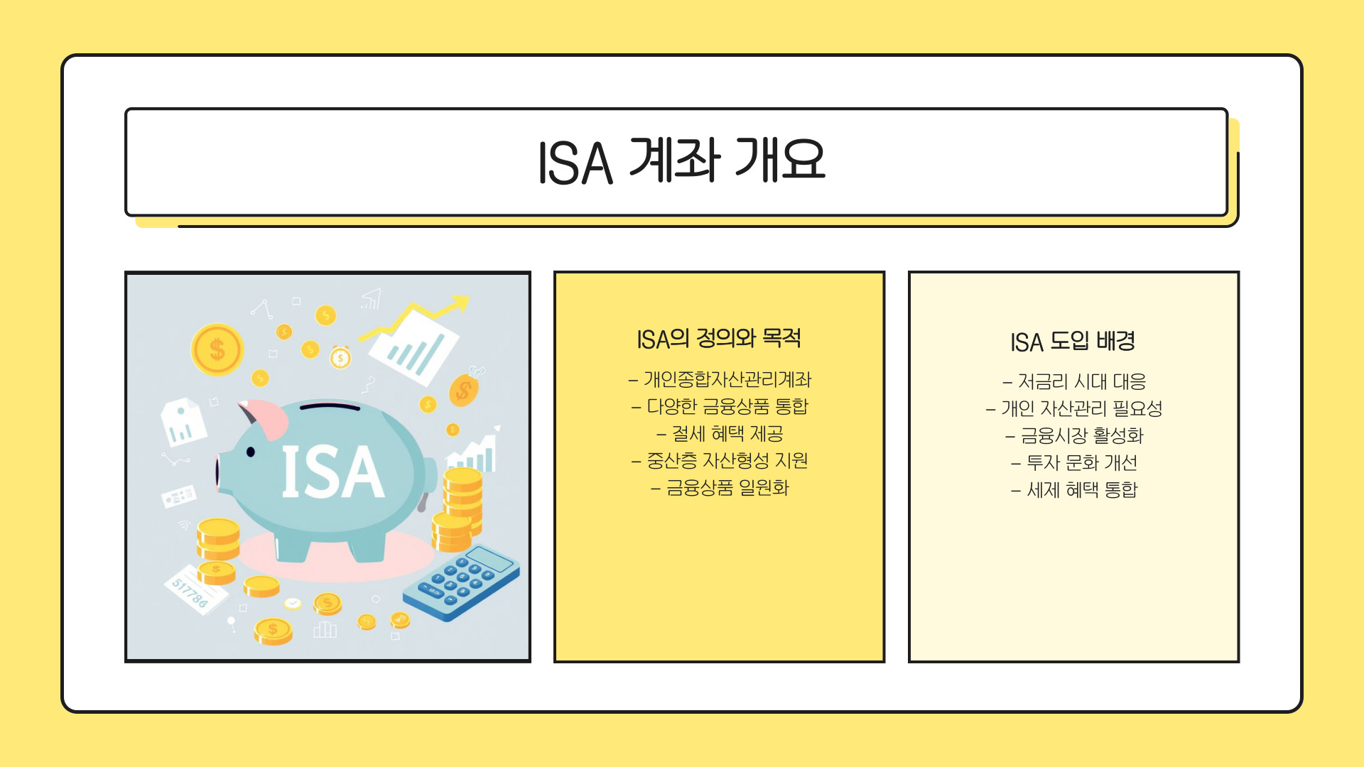 중개형 ISA(Individual Savings Account) 계좌는 개인이 자산을 관리하는 데 유용한 금융 상품입니다. ISA는 세금 혜택을 제공하여 투자 수익을 극대화할 수 있게 도와줍니다. 이번 포스트에서는 중개형 ISA 계좌를 개설하는 방법과 다양한 종류의 ISA 계좌를 비교 분석하여, 독자들이 보다 나은 금융 결정을 내릴 수 있도록 돕고자 합니다.