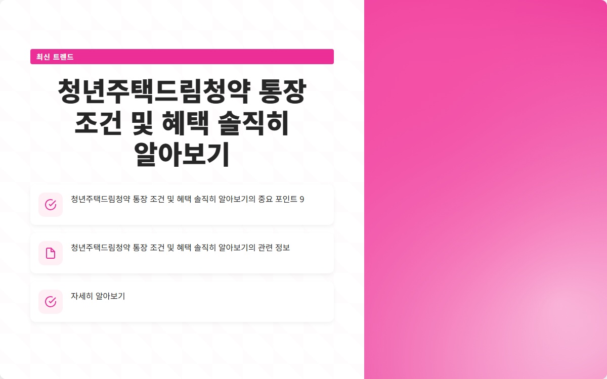 - 청년주택드림청약 통장 조건 및 혜택 이해하기