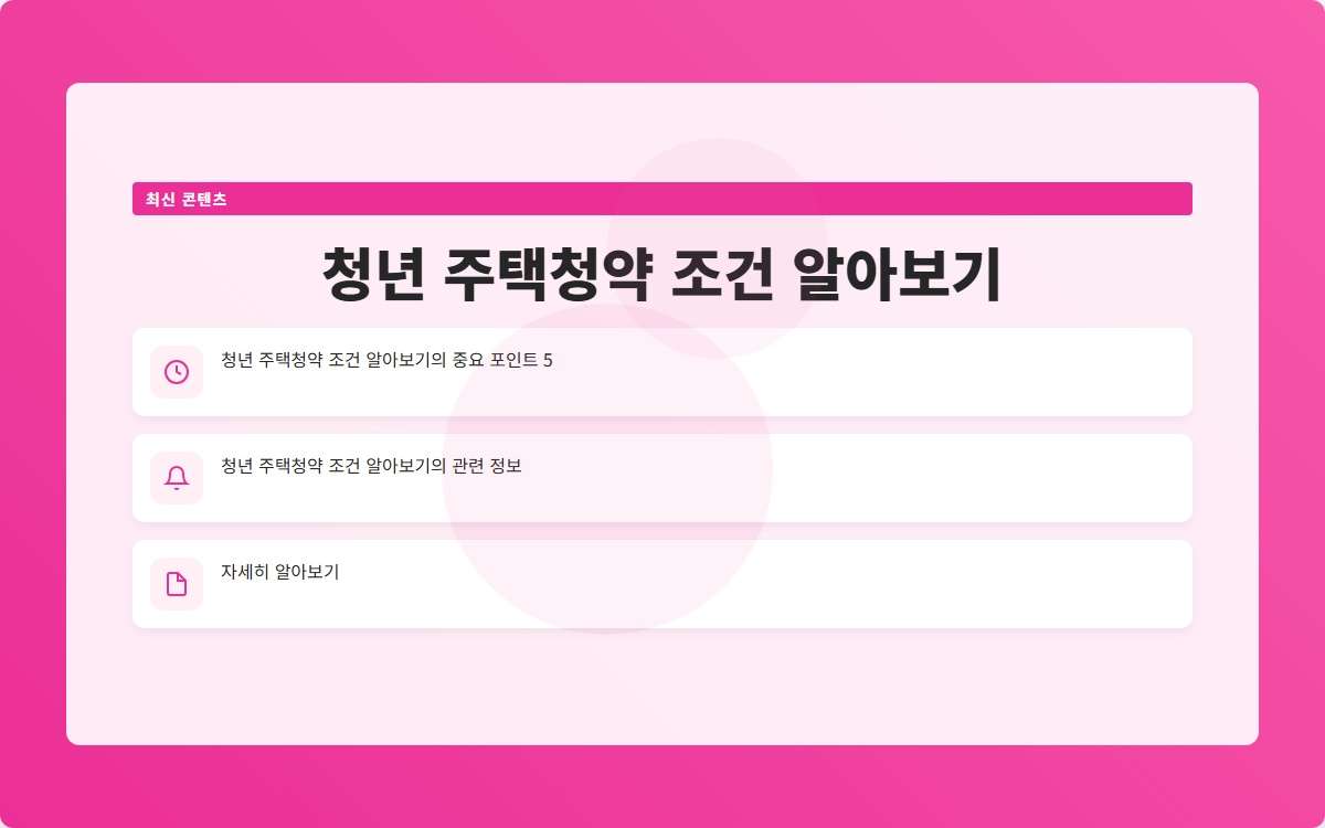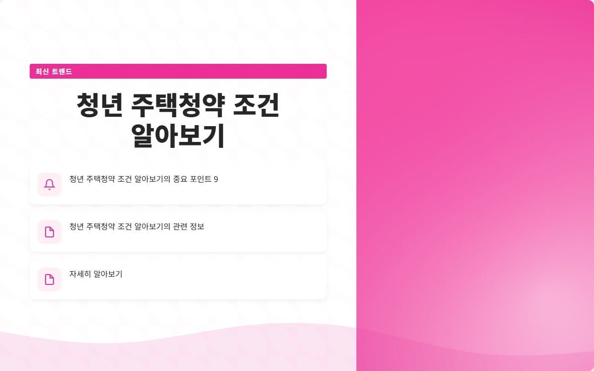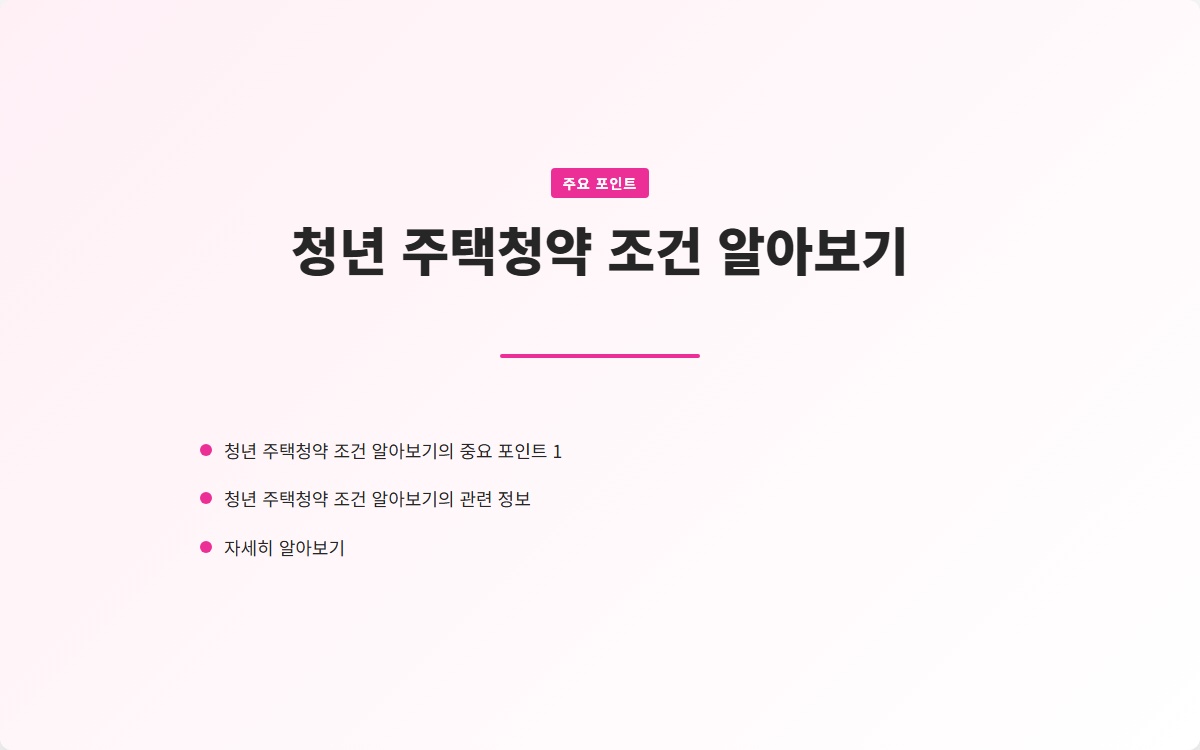 청년 주택청약은 집을 마련하고자 하는 청년들에게 큰 기회를 제공합니다. 기본 조건과 추가 조건을 잘 이해하고, 청약 신청 절차를 따라간다면 좋은 결과를 얻을 수 있을 것입니다. 청년 주택청약을 적극적으로 활용하여 행복한 내 집을 마련해 보세요!