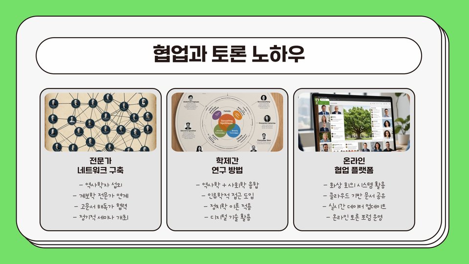 셋째, 주변의 역사 전문가와의 협업을 통해 다양한 관점을 수용하는 것이 중요합니다. 마지막으로, 지속적인 학습을 통해 역사에 대한 깊은 이해를 쌓아가는 것이 필요합니다.