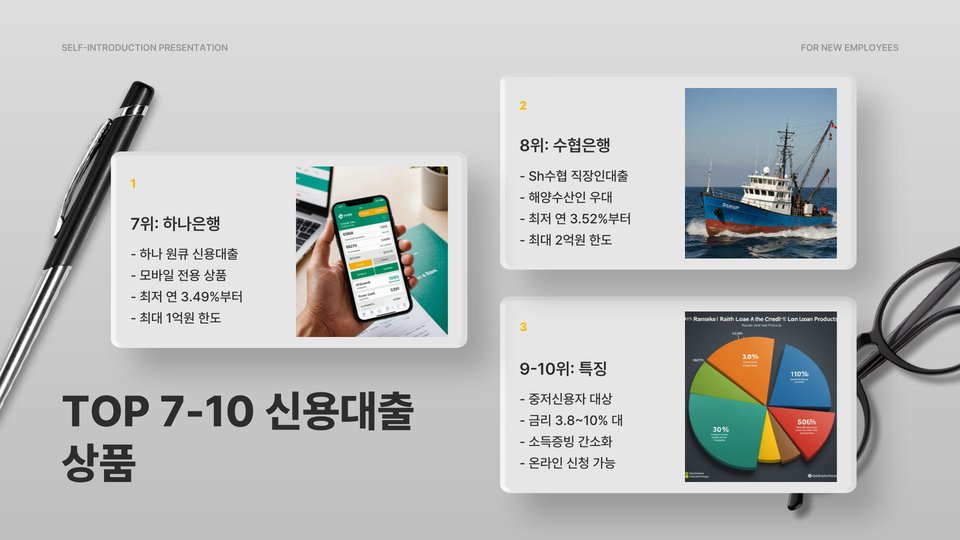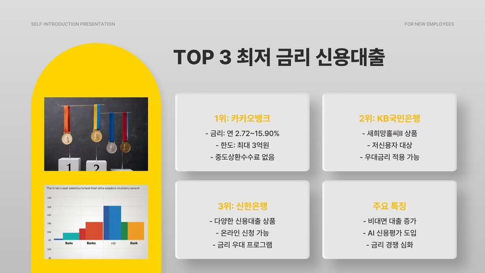 다음은 현재 시장에서 제공하는 최저 금리 신용대출 상품 TOP 10입니다. 각 상품의 금리와 특징을 비교하여 자신에게 맞는 대출 상품을 선택하는 데 도움이 될 것입니다.