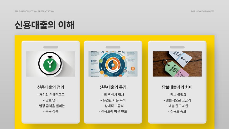 - 신용대출은 담보 없이 신용으로 대출이 가능하다.