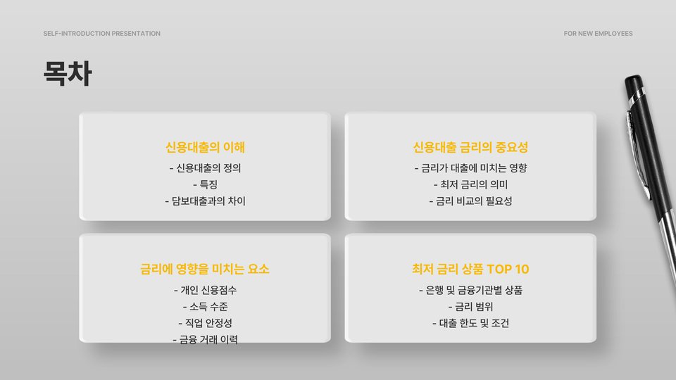 오늘은 많은 사람들이 필요로 하는 신용대출에 대해 알아보겠습니다. 신용대출은 자금이 급하게 필요할 때 유용한 금융상품으로, 낮은 금리가 제공되는 대출 상품을 선택하는 것이 중요합니다. 올바른 선택을 위해서는 각 금융기관의 금리와 조건을 비교하는 것이 필요하며, 이 글에서는 최저 금리로 제공되는 신용대출 TOP 10을 추천합니다. 이를 통해 효율적으로 자금을 관리하고, 부담을 줄일 수 있을 것입니다.