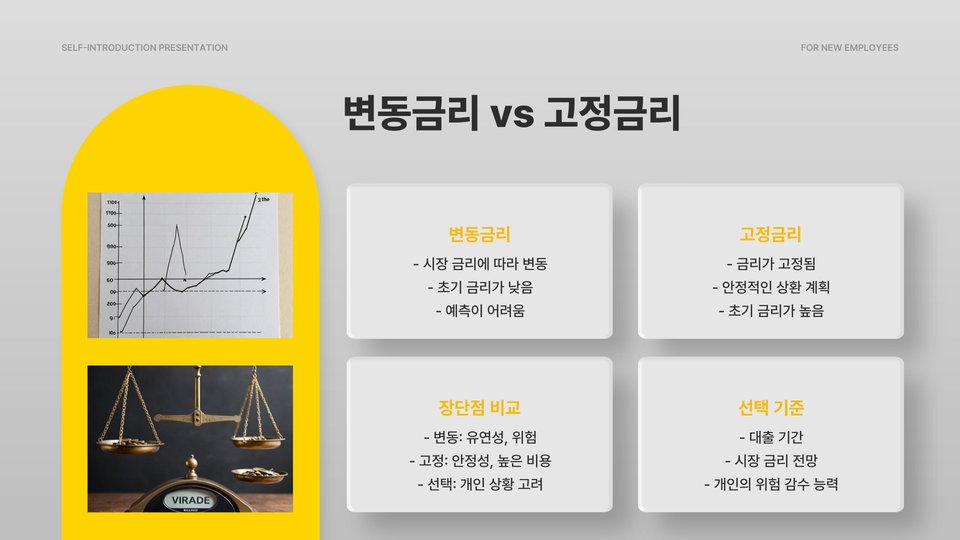 - 각 금융기관의 금리를 비교하여 최적의 상품을 선택해야 한다.