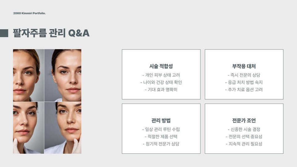 팔자주름 필러는 효과적인 방법이지만, 부작용에 대한 이해와 예방이 중요합니다. 이번 포스트에서 제공된 정보가 도움이 되길 바라며, 항상 전문가의 조언을 통해 안전한 시술을 받는 것이 중요합니다.