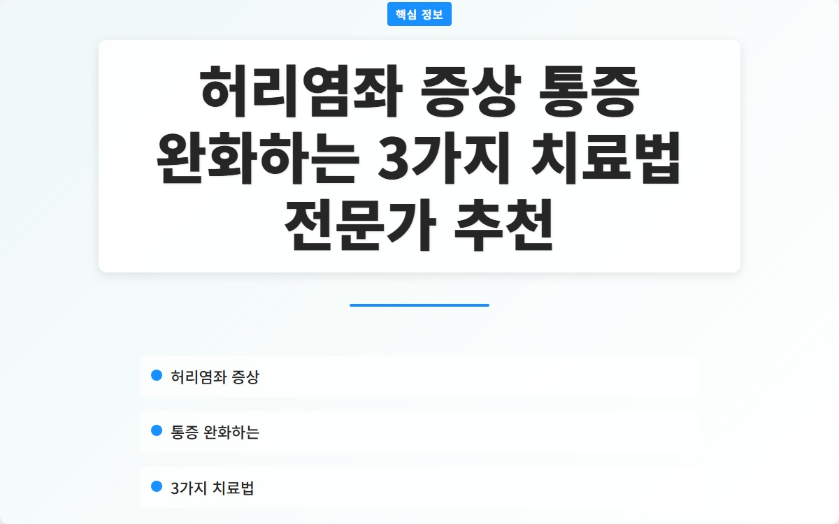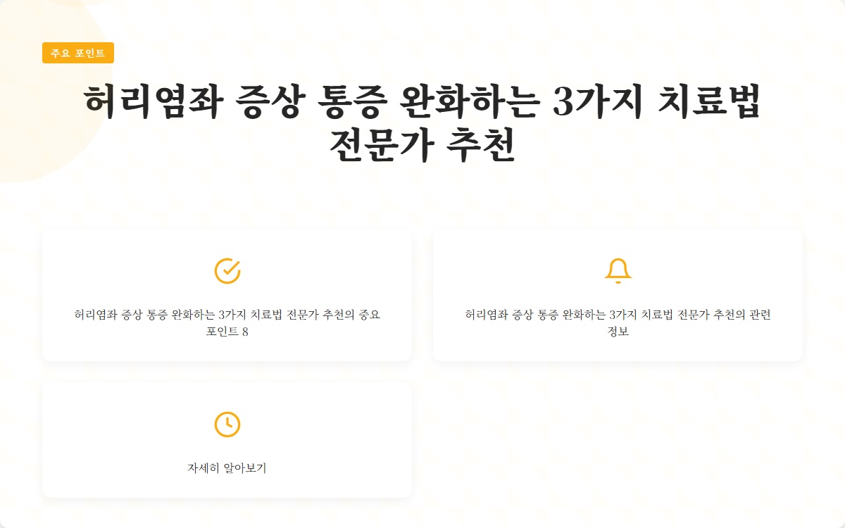 허리염좌의 치료는 다양한 방법이 있습니다. 여기에서는 전문가가 추천하는 세 가지 효과적인 치료법을 소개합니다.