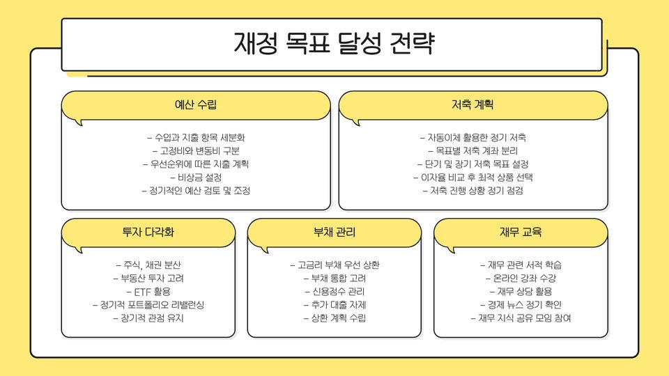 목표 설정 | SMART 원칙에 따라 구체적인 목표를 설정하라. |