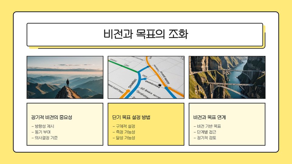 목표 설정은 성공의 첫 번째 단계입니다. 목표는 우리가 무엇을 원하는지를 명확히 하고, 그 목표를 향해 나아가는 길잡이 역할을 합니다. 그러나 단순히 목표를 설정하는 것만으로는 부족합니다. 목표는 SMART 원칙, 즉 구체적이고, 측정 가능하며, 달성 가능하고, 관련성이 있으며, 시간적으로 한정된 형태여야 합니다. 이 원칙에 따라 작성된 목표는 실현 가능성이 높아집니다.