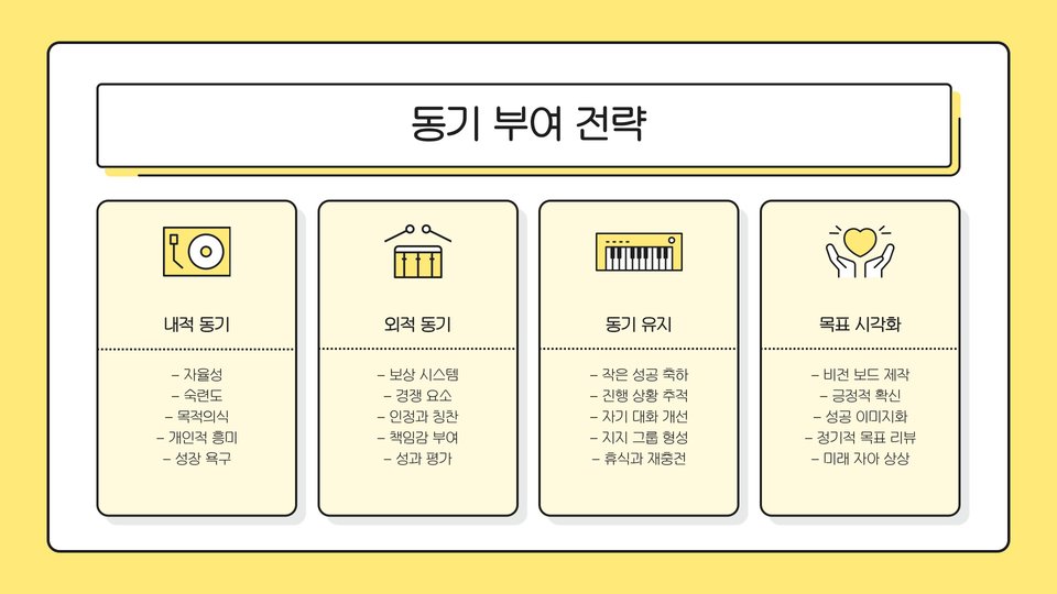 목표를 향해 나아가기 위해서는 자기 관리가 필수적입니다. 자신을 지속적으로 동기 부여하는 방법을 찾아야 합니다. 예를 들어, 목표를 친구나 가족과 공유하여 서로 격려할 수 있습니다. 또한, 목표 달성 과정을 기록하는 것도 좋습니다. 자신의 성과를 시각적으로 확인하면 큰 동기 부여가 됩니다. 매일의 작은 성취를 기록하면서 자신감을 키워나가세요.
