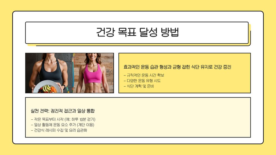 예를 들어, "체중 감량"이라는 목표는 너무 막연합니다. 대신 "2025년 6월까지 5kg 감량하기"라는 구체적인 목표를 설정하는 것이 훨씬 효과적입니다. 이렇게 명확한 목표를 설정하면 자신의 진행 상황을 점검하고 필요한 조치를 취하는 것도 용이해집니다.