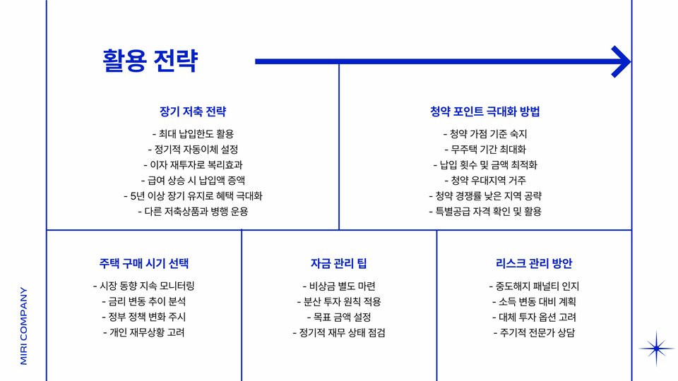 주택청약 통장을 효과적으로 관리하기 위해서는 몇 가지 중요한 포인트를 짚고 넘어가는 것이 좋습니다. 첫째로, 주택청약 통장은 장기적 관점에서 접근하는 금융 상품으로 분류됩니다. 초기에 설정한 금액을 정기적으로 납입하고, 이를 통해 주택구매에 필요한 자금을 꾸준히 마련하는 것이 중요합니다.