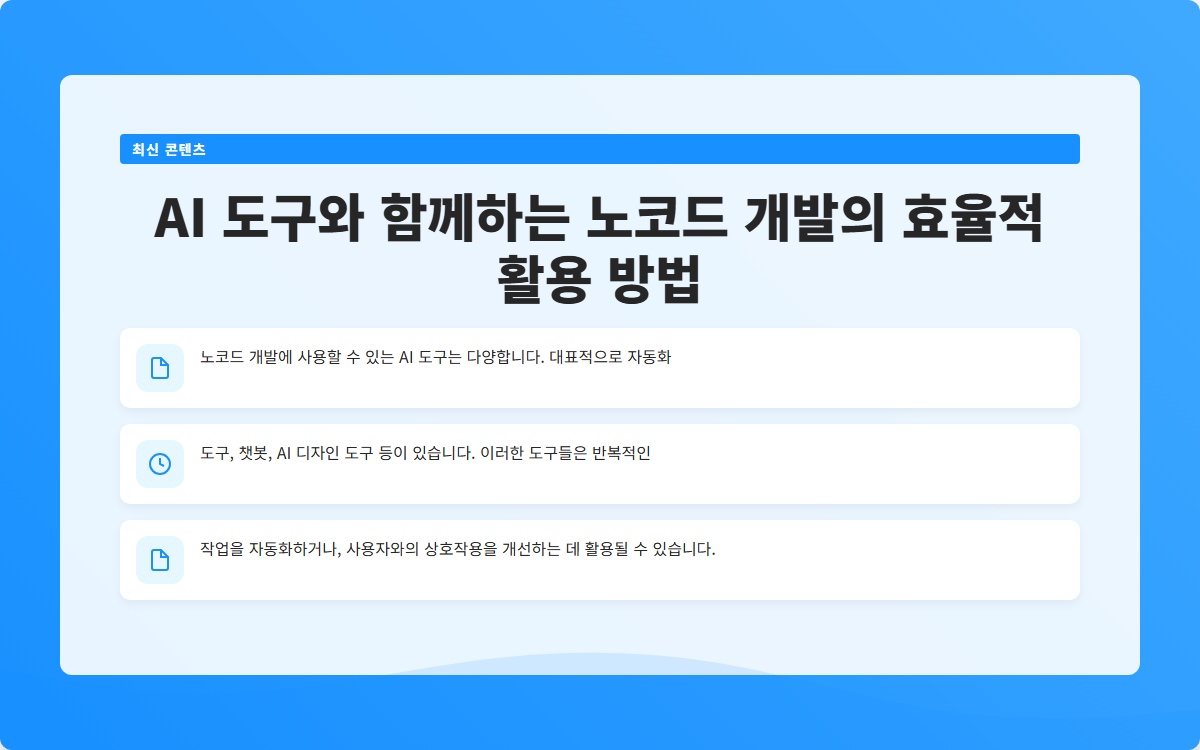 - AI 도구는 노코드 개발의 효율성을 높인다.