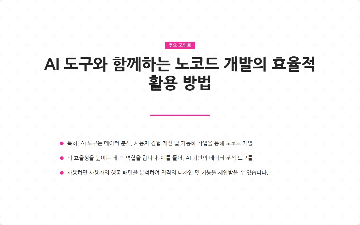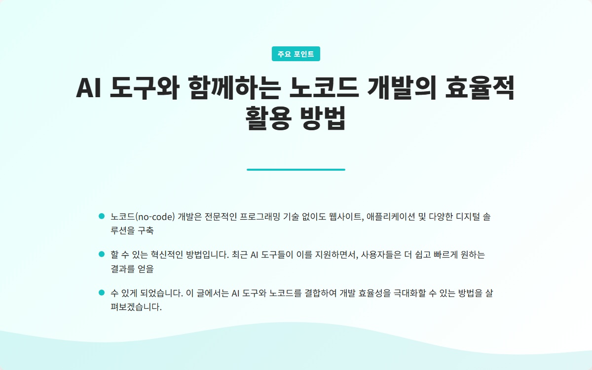 • AI 도구는 노코드 개발의 효율성을 높인다.