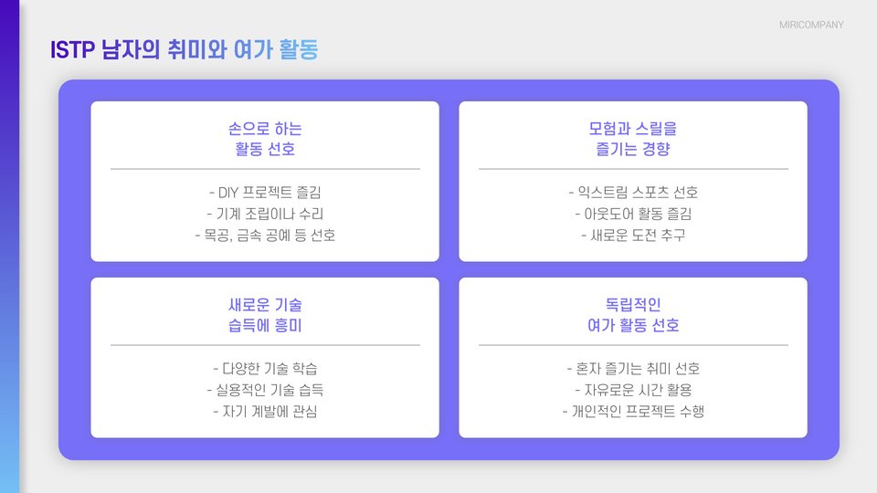 - ISTP 남자는 독립적이고 실용적인 성격을 가짐.