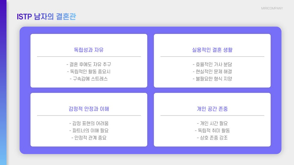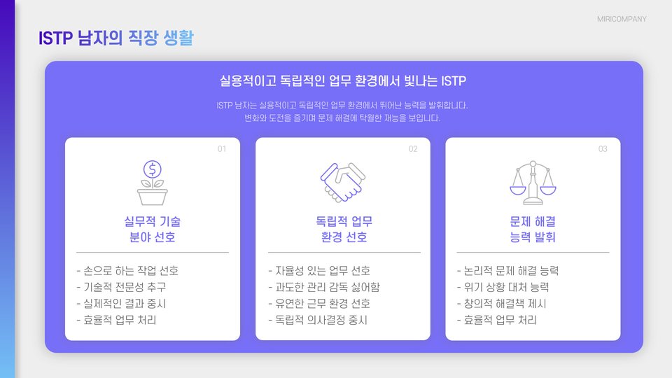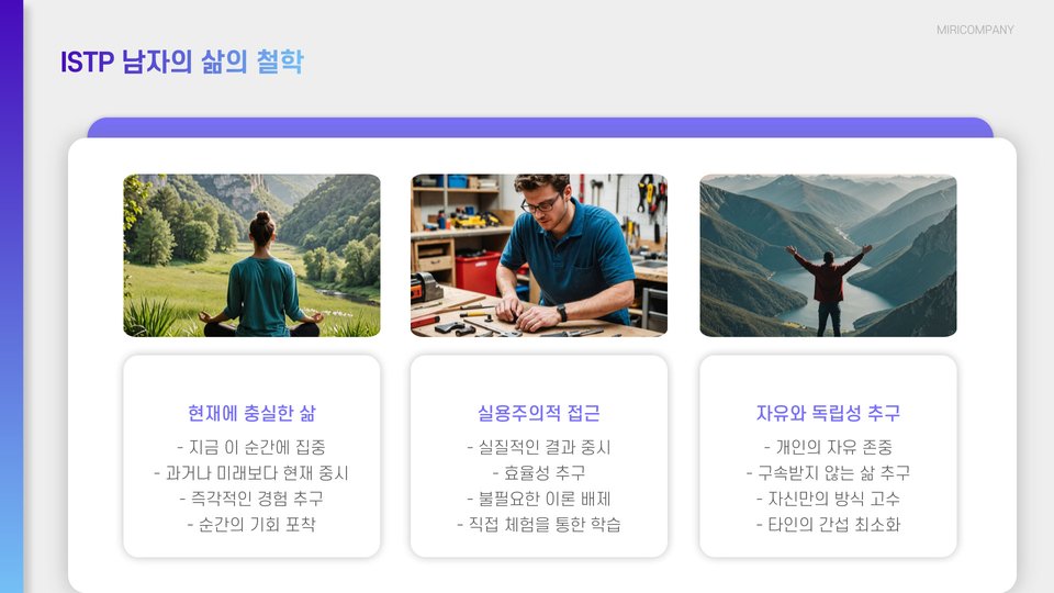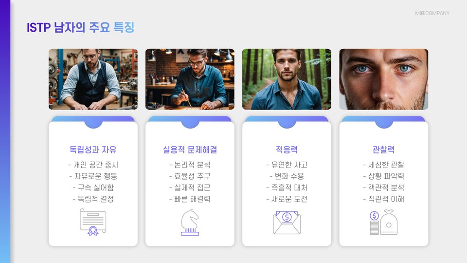 - ISTP 남자는 독립적이고 실용적인 성격을 가짐.